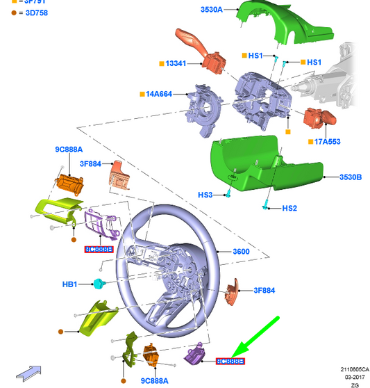 NEW FORD MUSTANG MK6 STEERING WHEEL RIGHT SWITCH 5289038 ORIGINAL