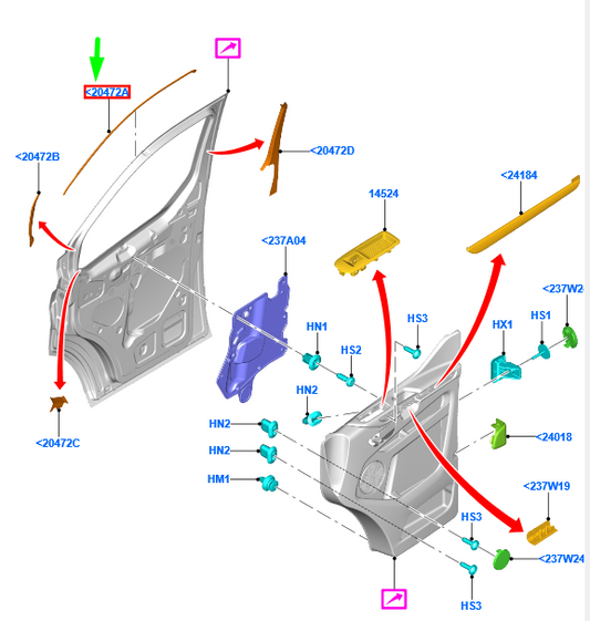NEW FORD RANGER T6 MK1 REAR RIGHT DOOR HANDLE LOCK REINFORCEMENT 2474397