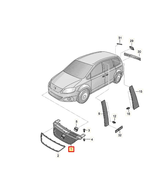 NEW SEAT ALHAMBRA MK2 7N FRONT BUMPER RADIATOR GRILLE 7N5853653G9B9 ORIGINAL