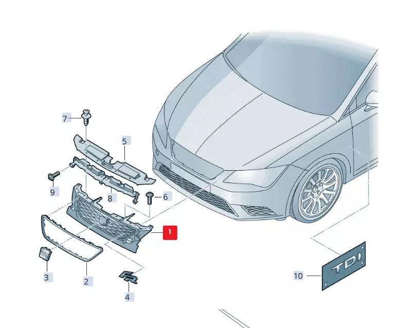 NEW SEAT LEON 5F FRONT BUMPER RADIATOR GRILLE 5F98536549B9 ORIGINAL | Part No.: 5F98536549B9