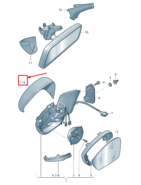 NEW SKODA OCTAVIA 5E MK3 UPPER FRONT RIGHT MIRROR CAP 5E08575389B9 ORIGINAL | Part No.: 5E08575389B9
