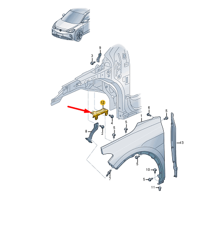 NEW VOLKSWAGEN ID.4 E21 FRONT RIGHT FENDER UPPER HOLDER 11A821432 ORIGINAL | Part No.: 11A821432
