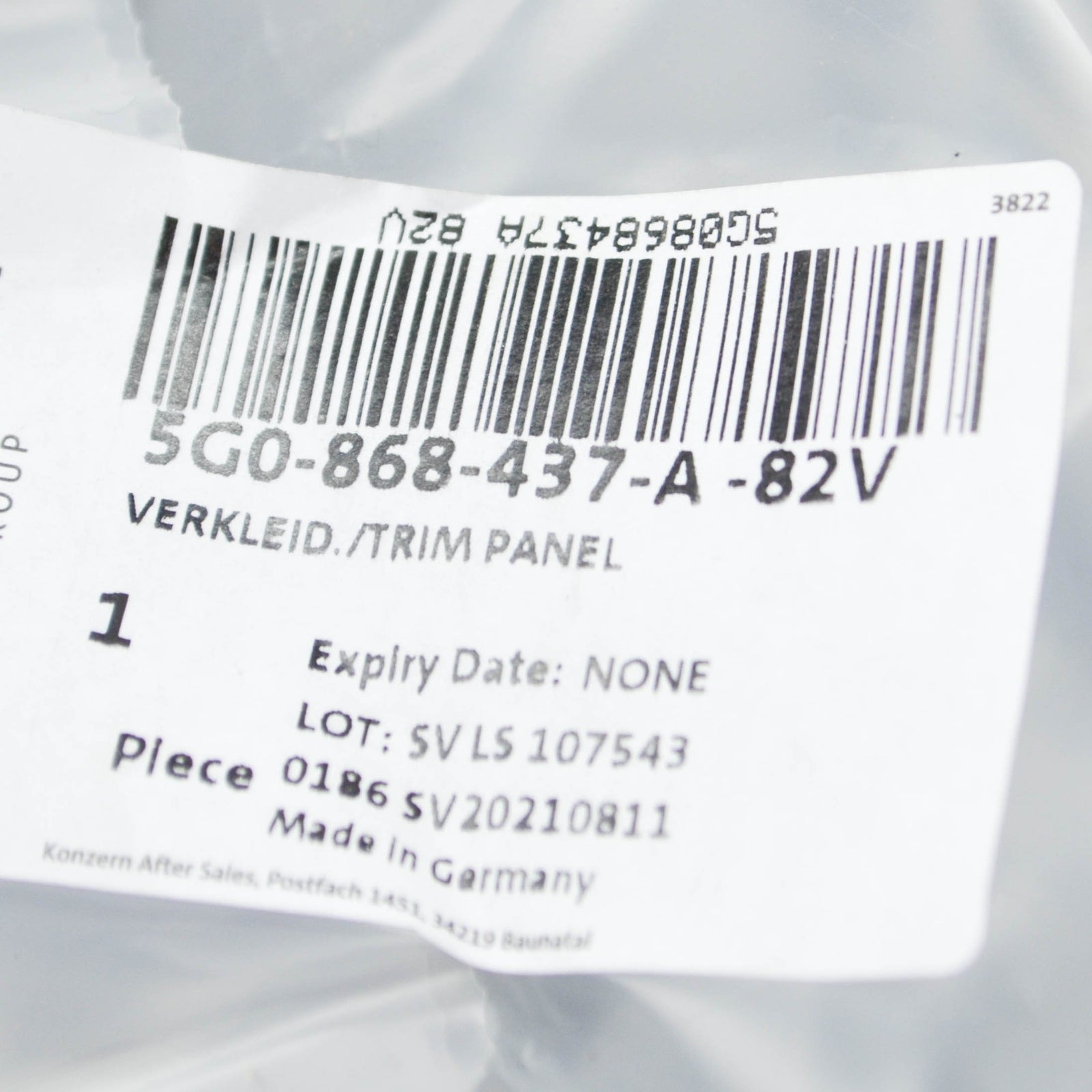NEW VW E-GOLF 5G MK7 INTERIOR REAR VIEW MIRROR COVER TRIM 5G0868437A82V ORIGINAL | Part No.: 5G0868437A82V